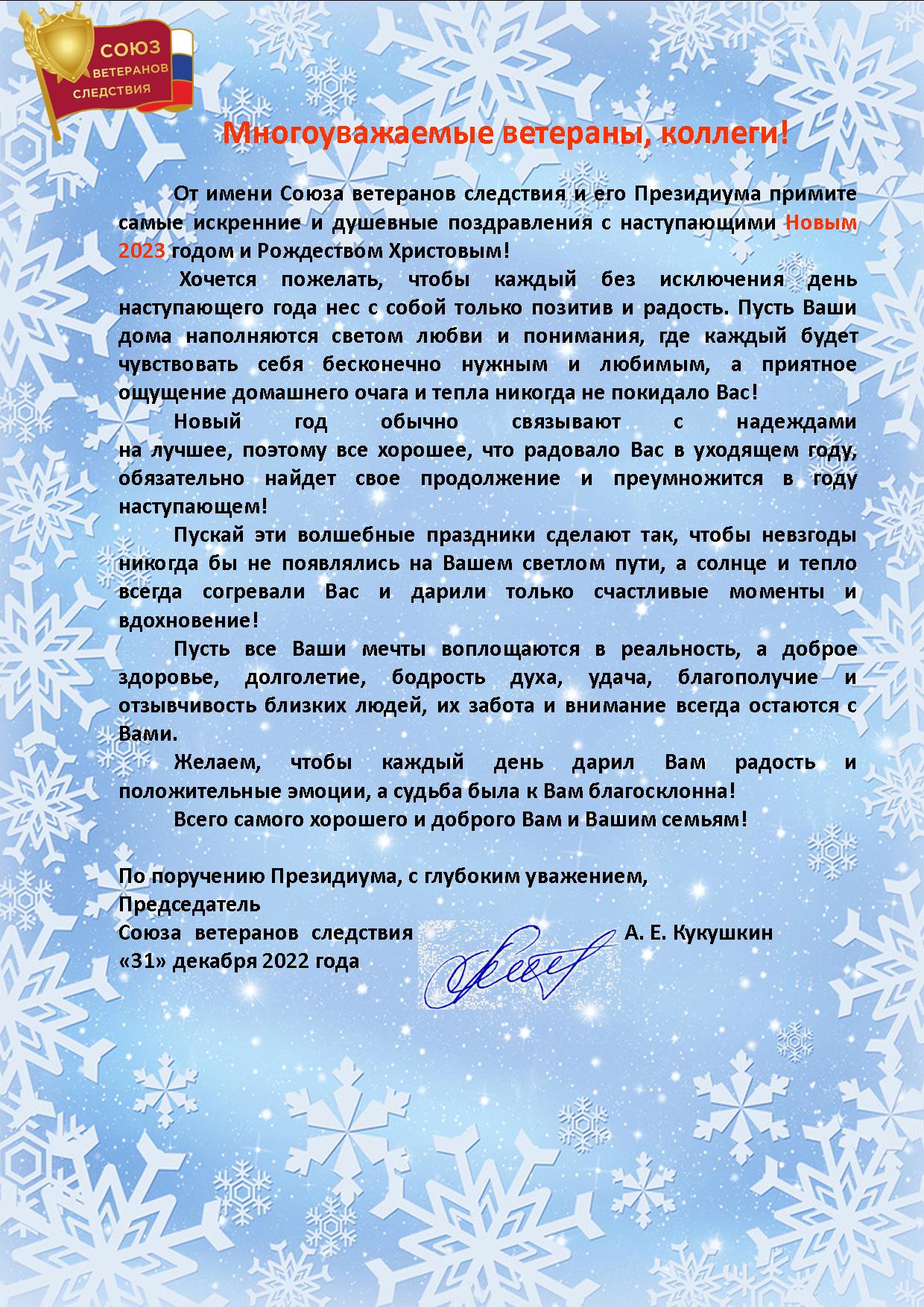 Союз Ветеранов Следствия поздравляет Вас с юбилеем 70 лет!