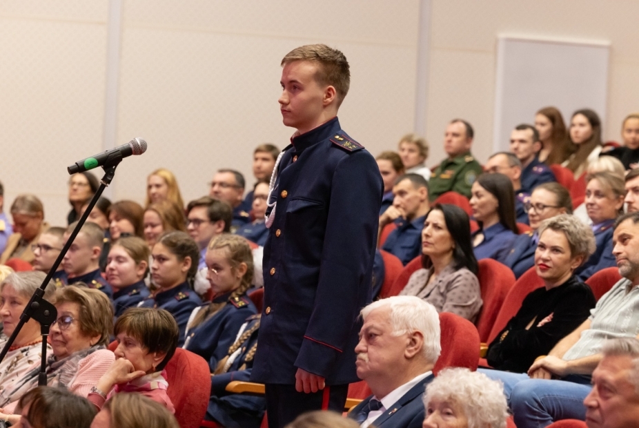 Присутствующие курсанты, кадеты и студенты задали Владимиру Львовичу вопросы о его личном взгляде на роль следователя СК России, о том, может ли один герой изменить общественное сознание, о преградах на творческом пути артиста и о том, как положительно влиять на поведение окружающих.