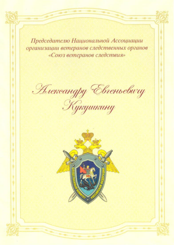 Союз Ветеранов Следствия поздравляет Вас с юбилеем 70 лет!