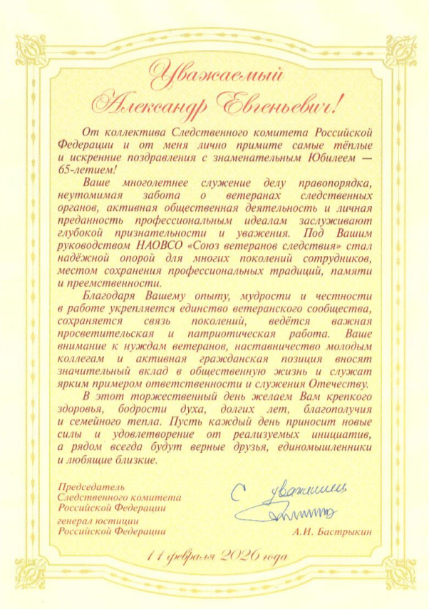 Союз Ветеранов Следствия поздравляет Вас с юбилеем 65 лет!