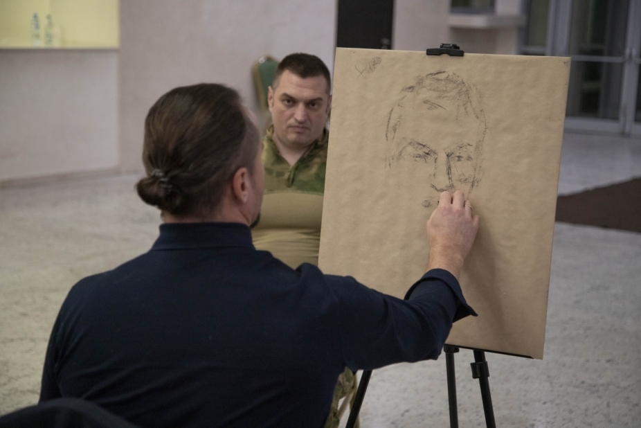 В завершение мероприятия Сергей Марченко провел мастер-класс, в ходе которого написал портрет участника СВО Дениса Кимова, продемонстрировав процесс создания художественного образа.