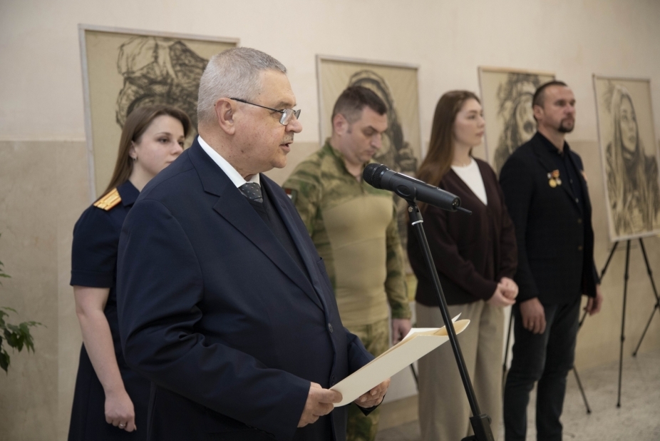 В Следственном комитете Российской Федерации состоялось торжественное открытие передвижной художественной выставки «Уголь Донбасса. Лица Победы». Мероприятие организовано Культурным центром Следственного комитета России. В нем приняли участие заместитель Председателя СК России Александр Вячеславович Федоров, руководитель Культурного центра – помощник Председателя СК России Мария Дмитриевна Краснопеева, Председатель Национальной Ассоциации организаций ветеранов следственных органов «Союз ветеранов следствия» Александр Евгеньевич Кукушкин, активный член Союза ветеранов следствия Сергей Иванович Спадарик, член Московского Союза художников, автор выставки Сергей Иванович Марченко, российская спортсменка, военный корреспондент Марьяна Александровна Наумова, участник специальной военной операции Денис Андреевич Кимов, сотрудники центрального аппарата Следственного комитета, обучающиеся образовательных учреждений СК России и Военного университета им. князя А. Невского Министерства обороны РФ.